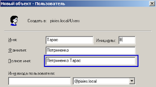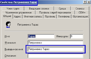 Ми використовуємо засіб “Active Directory – Пользователи и компьютеры” (надалі - ADU&C) для створення користувачів/поштових скриньок. За замовчуванням ім’я та формат відображуваного імені при створенні такі: “<Ім’я> <Ініціал>. <Прізвище>”, але вони можуть змінені на “<Прізвище> <Ім’я>” встановленням атрибуту createDialog об’єкту user-Display гілки CN=DisplaySpecifiers, об’єкту CN=419 (419 – значення для кирилиці, 409 – для англійської мови) в значення “%<sn> %<givenname>” у конфігураційному контекстному меню утиліти ADSIEDIT.msc.Процедура описана в статті (англійською): “Як змінити відображувані імена користувачів Active Directory”.