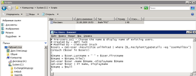 Тепер збережіть скрипт, поданий нижче, в файл C:\Scripts\Pre-Users.ps1.