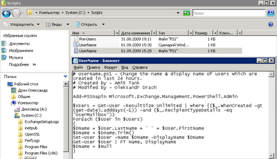 Створіть два файли, вміст яких подано нижче, в папці C:\Scripts вашого сервера Exchange.