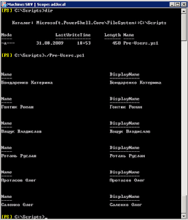 Зайдіть в Management Shell, змініть поточний каталог на C:\Scripts і виконайте щойно створений скрипт командою ./Pre-Users.ps1.
