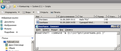 Powershell -command "& {C:\Scripts\UserName.ps1 }"